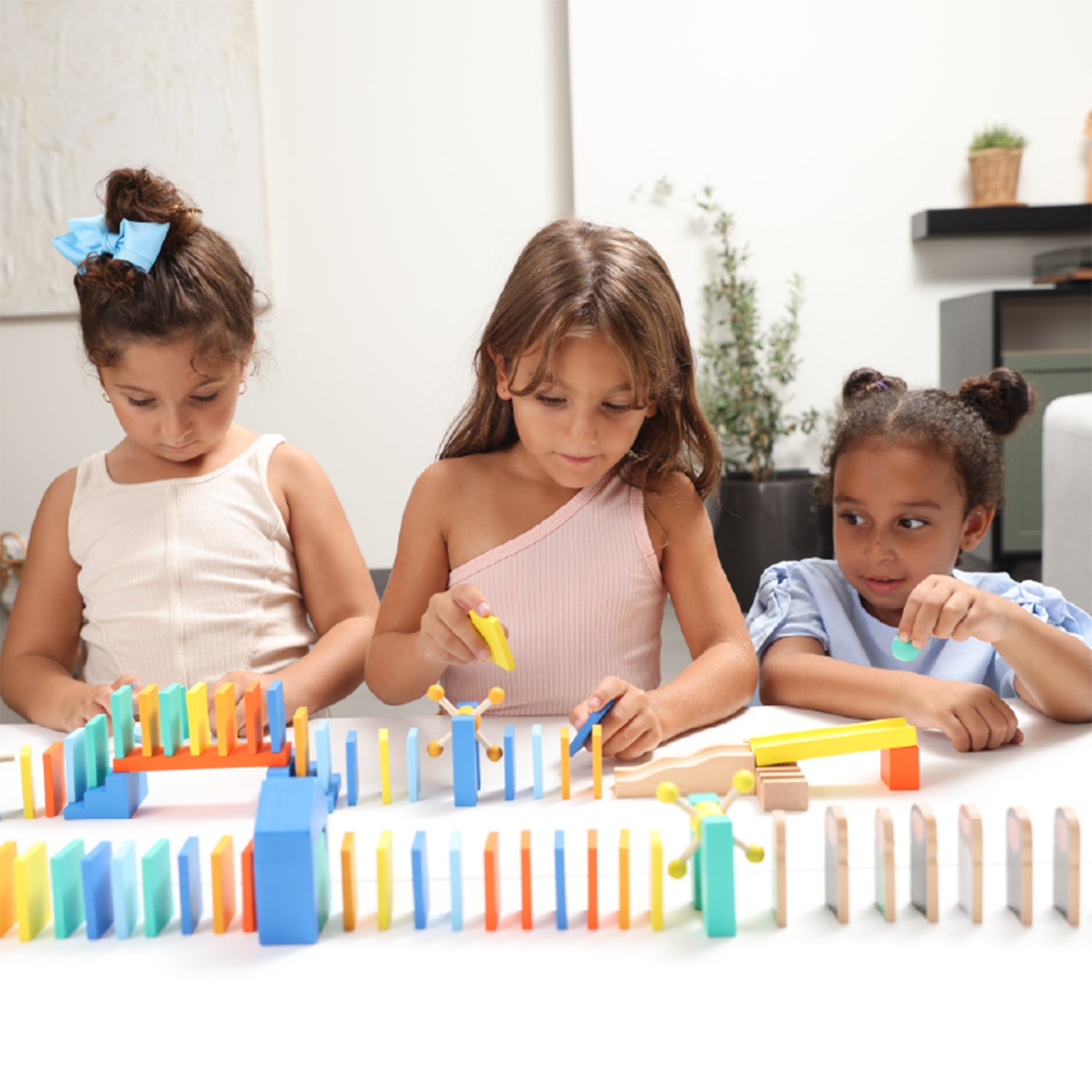 - أبطال الإبداع: انظروا كيف يطلق أطفالكم العنان لمواهبهم الفنية وهم يبنون أنماط وتصاميم دومينو لا حصر لها، مما يعزز مهارات التفكير الاستراتيجي وحل المشكلات.