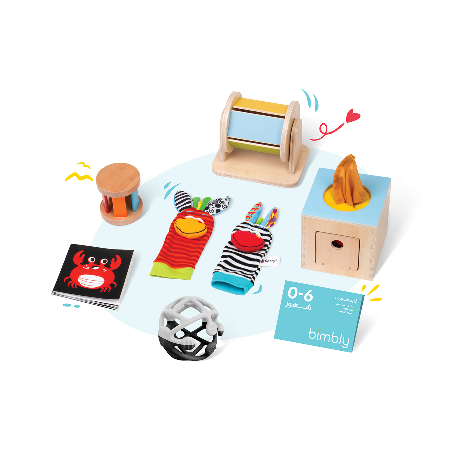 يتضمن الصندوق ادوات تحفز النمو المعرفي و الحسي لطفلك