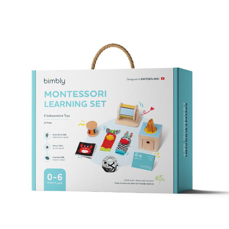 مع صندوق مونتيسوري يقظة الحواس، المصمم خصيصًا لدعم نمو طفلكم منذ الولادة وحتى عمر 6 أشهر، ستبدأون رحلة مليئة بالتعلم والمرح. يحتوي الصندوق على ألعاب محفزة تنشط حواس طفلكم وتساهم في تطوير مهاراته الحركية والبصرية والسمعية بالإضافة إلى المهارات المختلفة. تعرفوا على محتوى الصندوق