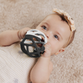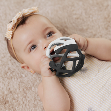 - العضاضة الكروية: تساعد العضاضة الكروية المصنوعة من السيليكون باللونين الأسود والأبيض على تعزيز قوة عضلات الطفل من خلال استخدامها أثناء وقت الاستلقاء على البطن.
