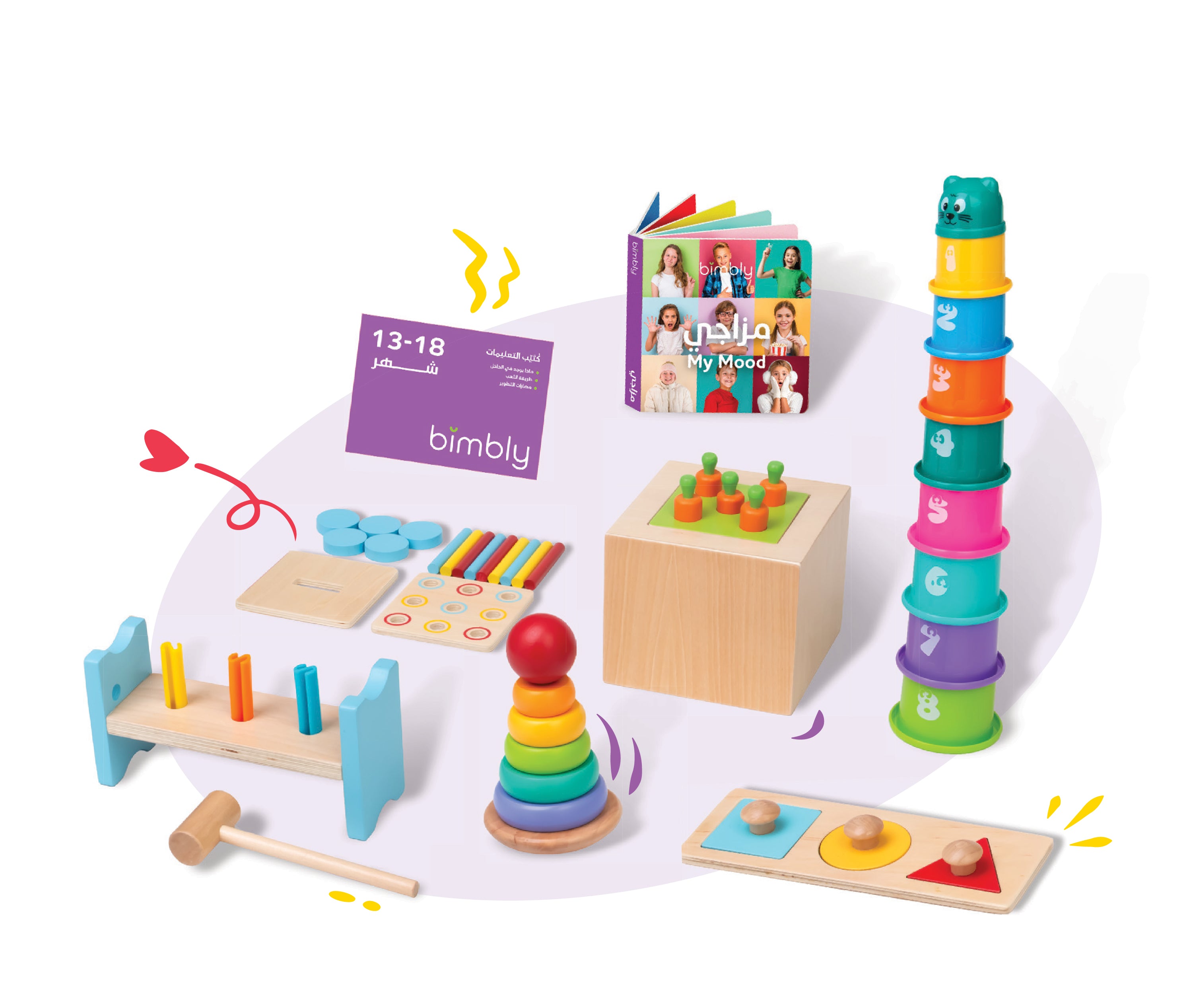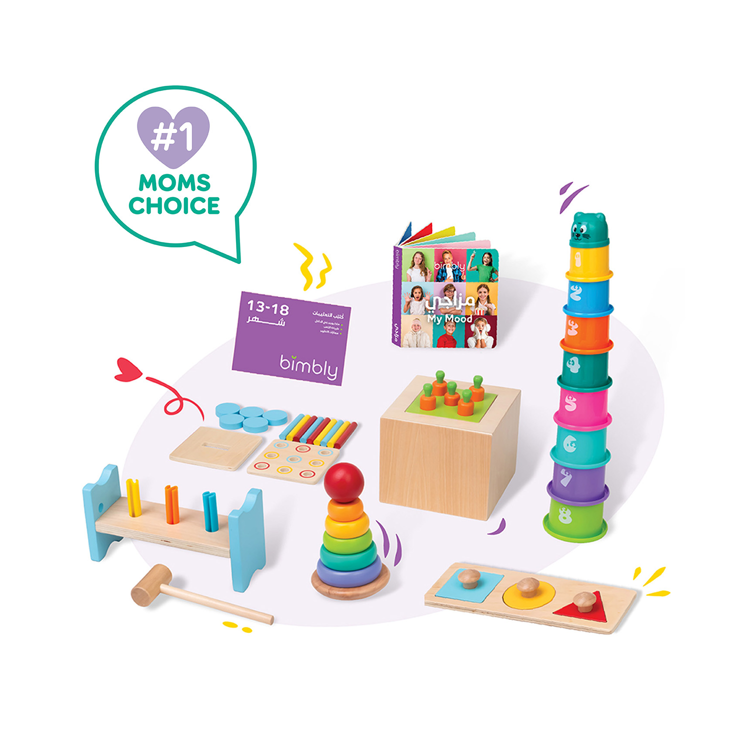 يتضمن الصندوق ادوات تحفز النمو المعرفي و الحسي لطفلك
