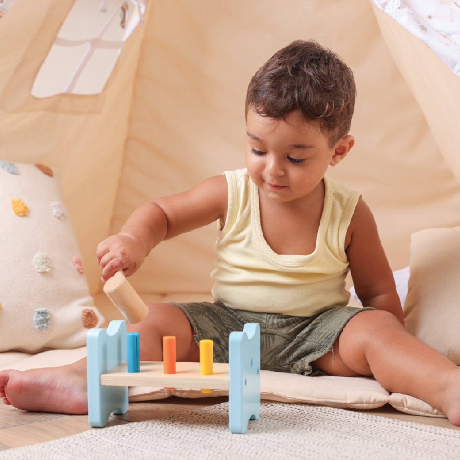 المطرقة والوتد: لعبة كلاسيكية لتقوية التنسيق بين اليد والعين والمهارات الحركية الدقيقة، بألوان جذابة.